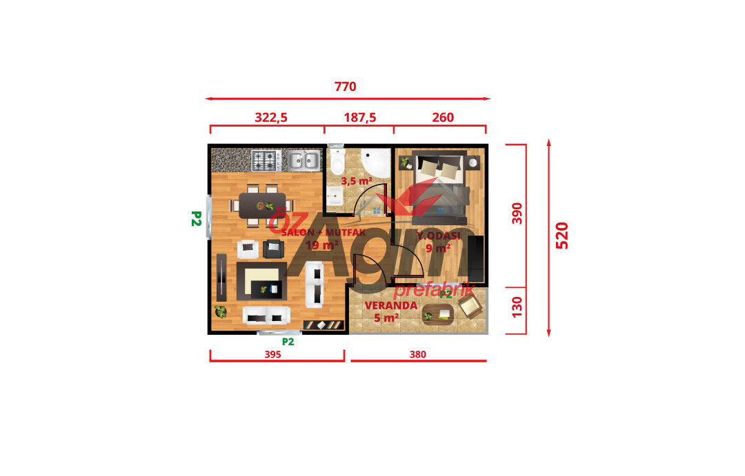 Tek Katlı Prefabrik Ev; AGM Prefabrik teknolojisi ile detaylandırılan prefabrik konut yapılarda güncel yapı yönetmelikleri dikkate alınarak projelendirme ve tasarım hizmetleri sunulmaktadır. Tek katlı prefabrik evleri Öz Agm Yapı; farklı ve çekici ev tasarımları olarak geniş bir yelpazede müşterilerine sunmakta ve aynı zamanda özgün tasarımlar oluşturabilmek için müşterileriyle birlikte de çalışabilmektedir. Prefabrik Evler Her türlü iklim koşullarında kullanılabilen, sağlam estetik ve uzun ömürlü yapılardır.