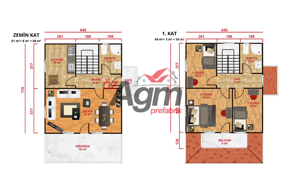 AGM 204 122M2 Dubleks Prefabrik Ev